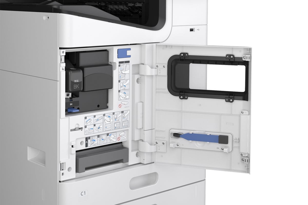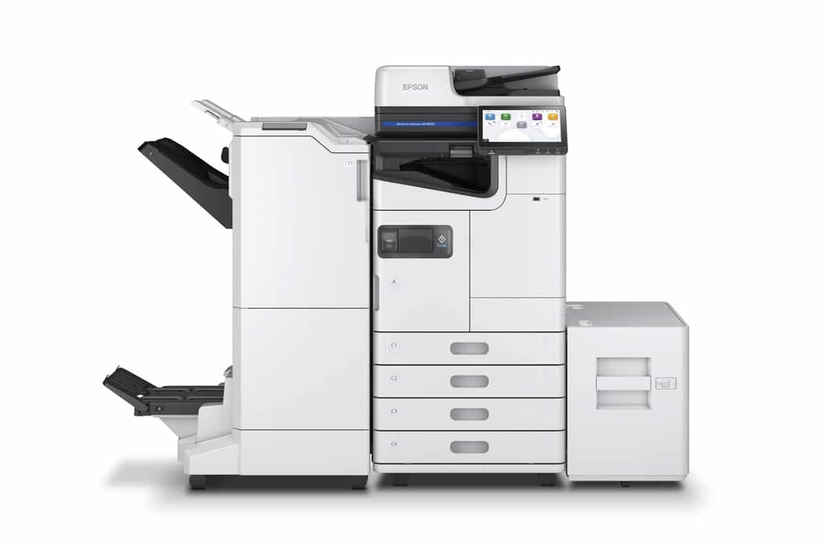 The WorkForce® Enterprise AMM5500 is a robust monochrome multifunction printer designed to deliver productivity, efficiency, and sustainability to modern business environments. Powered by Epson’s PrecisionCore® Heat-Free technology, this printer supports high-speed output, advanced security, and versatile finishing options — all while significantly reducing energy consumption.